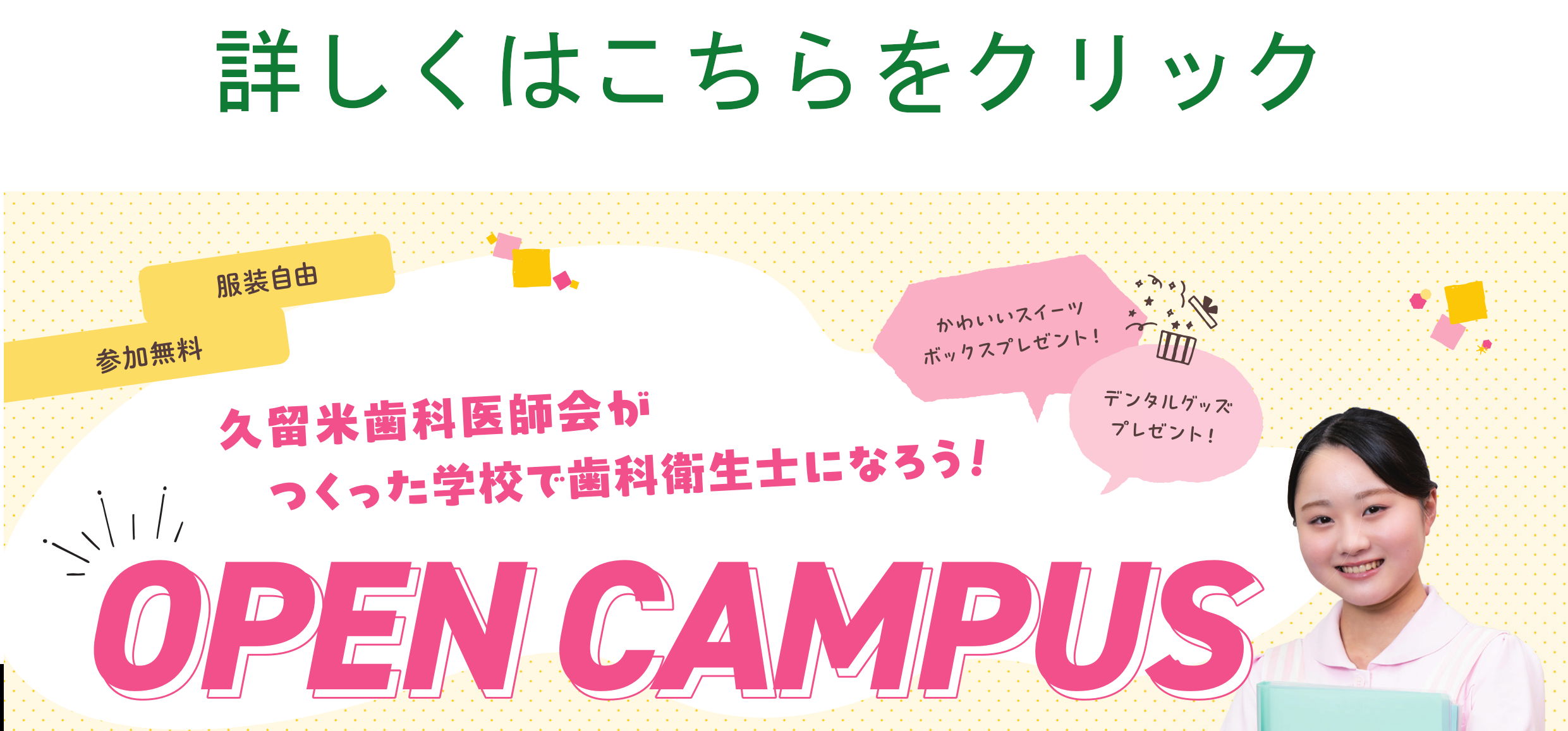 オープンキャンパスのお申込み OPEN CAMPUS オープンキャンパスのお申込みの方は、下記フォームに必須事項を入力し、送信してください。なお、準備の都合上、各開催日の3日前にエントリーの締め切りをさせて頂きます。 参加者(申込み者) お名前(ふりがな)必須 記入例:くるめ はなこ お名前必須 記入例:久留米 花子 郵便番号必須 記入例:123-4567 ご住所必須 メールアドレス必須 電話番号必須 *台風等での緊急連絡先 年齢必須 歳 在籍又は出身校必須 学年必須 既卒生の方は”0”を入力してください ※申込み者様以外に複数で参加をご希望の方は以下のフォームに同伴、参加者様の情報をご入力ください。 ※各回AM.PMとも、定員20名とさせていただきます。 ※4名以上(ご本人様含む)で参加を希望の方は、『その他ご要望・連絡事項』欄に参加する方全員のお名前のみをご記載ください。 一緒に参加される方々 ご関係必須 1.保護者2.家族・親戚3.担任等4.友人等 お名前 記入例:久留米 花子の母(保護者・家族親戚、担任等の方は続柄で結構です。) ※ご関係で4.友人等をお選びの方で、高校生の方は下記の欄にも記入をお願いします。 在籍校 年齢 歳 学年 ご関係(2人目) 1.保護者2.家族・親戚3.担任等4.友人等 お名前(2人目) 記入例:久留米 花子の母(保護者・家族親戚、担任等の方は続柄で結構です。) ※ご関係で4.友人等をお選びの方で、高校生の方は下記の欄にも記入をお願いします。 在籍校 学年 年齢 歳 参加希望日 希望日必須 夏のオープンキャンパス 令和8年5月10日(日)AM令和8年6月 7日(日)AM令和8年7月 5日(日)AM令和8年8月 2日(日)AM令和8年8月 2日(日)PM令和8年8月23日(日)AM春のオープンキャンパス 令和9年3月14日(日)AM 参加ご希望日をチェックして下さい 。 同伴者 保護者名 家族・他名 友人名 合計(本人含む) 名 その他ご要望・連絡事項 Δ